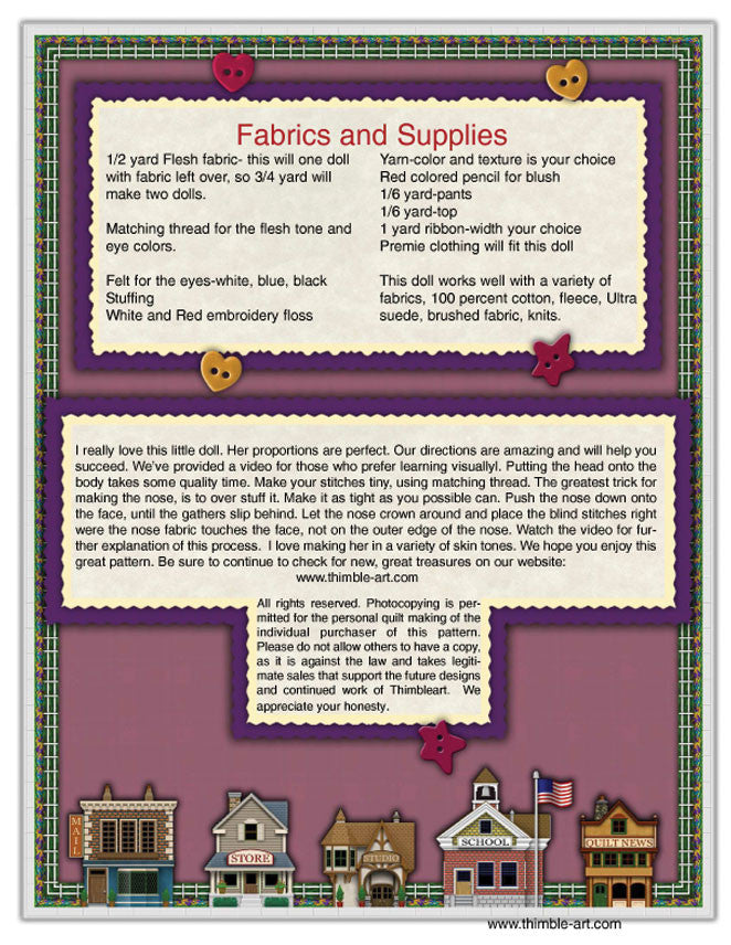 The Baby Ruthie doll is most adorable doll. It comes with a free downloadable pattern that is easy to follow. This baby doll would make a great gift for your little ones, as its arms and legs can bend and it's perfect for snuggling. If you'd like to learn how to make Baby Ruthie, you can watch our free video tutorial by clicking on the link below.