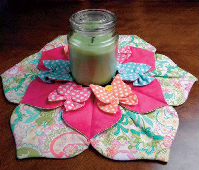 This Springtime Butterfly Kisses centerpiece is created using the fold-and-stitch technique. A beautiful flower and leaf combination is crowned by dimensional, delicate butterfly wings. This table topper is perfect for brightening and freshening up your home decor after a long winter. Welcome friends and family round your table with a sweet reminder of hope, love, and change in Spring.