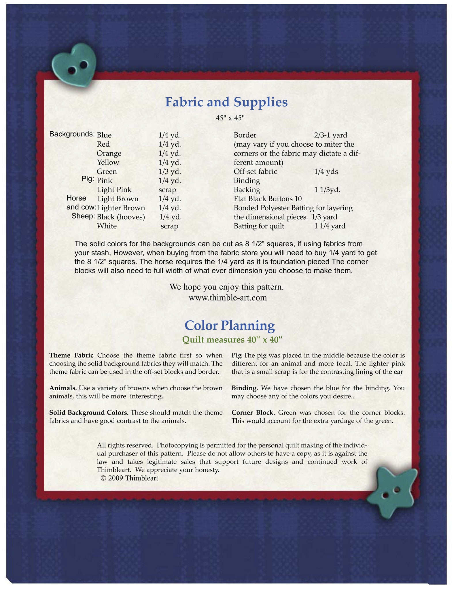Perfect for nurseries, children’s rooms, or anyone who loves the warmth of country life, this quilt pops with texture, color, and whimsy. The 3D animal faces add personality and touchable softness to each block, making it a one-of-a-kind project!