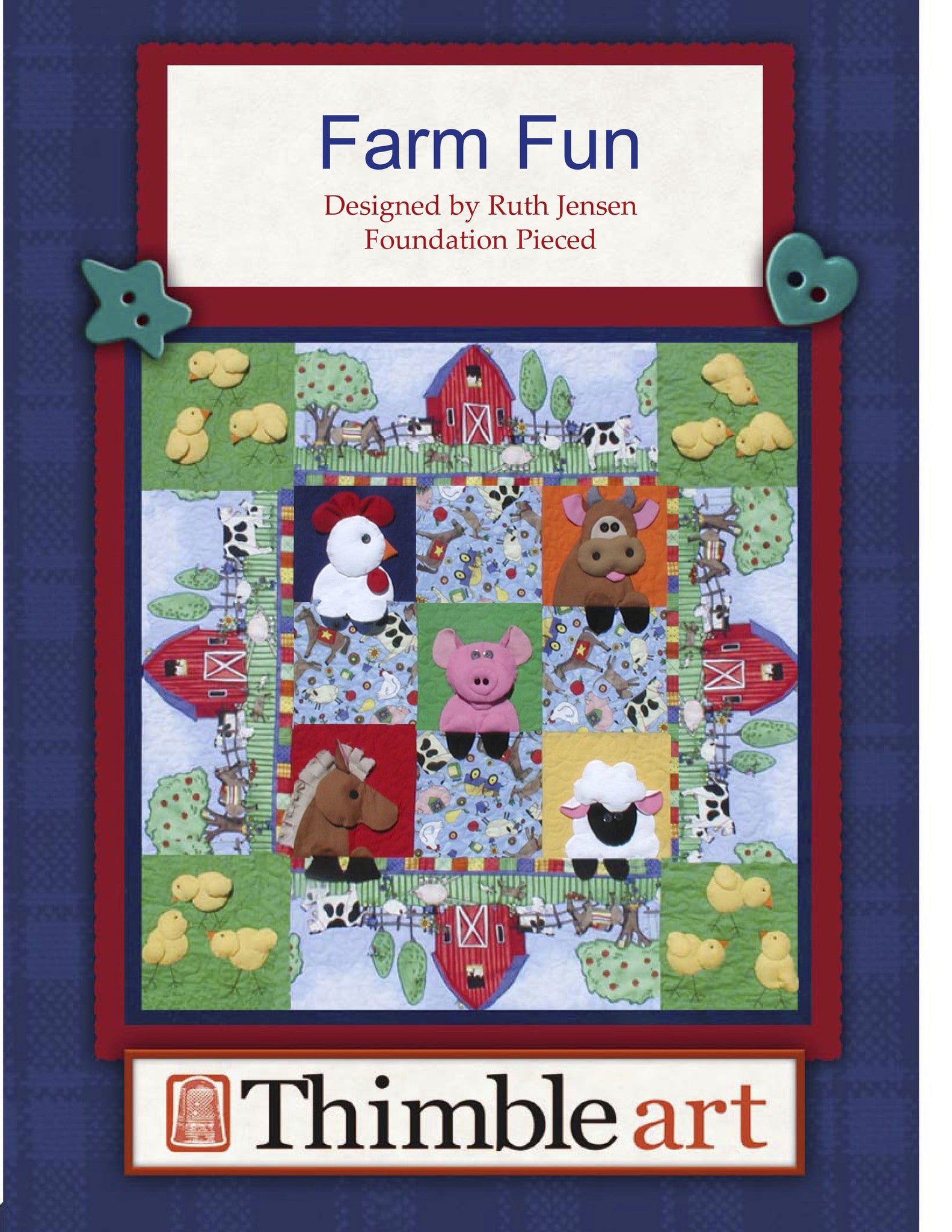Bring the charm of the countryside into your sewing room with Farm Fun—a playful quilt pattern featuring popular barnyard animals like cows, pigs, chickens, horses, and sheep, all crafted in Ruth Jensen’s signature dimensional paper piecing style.