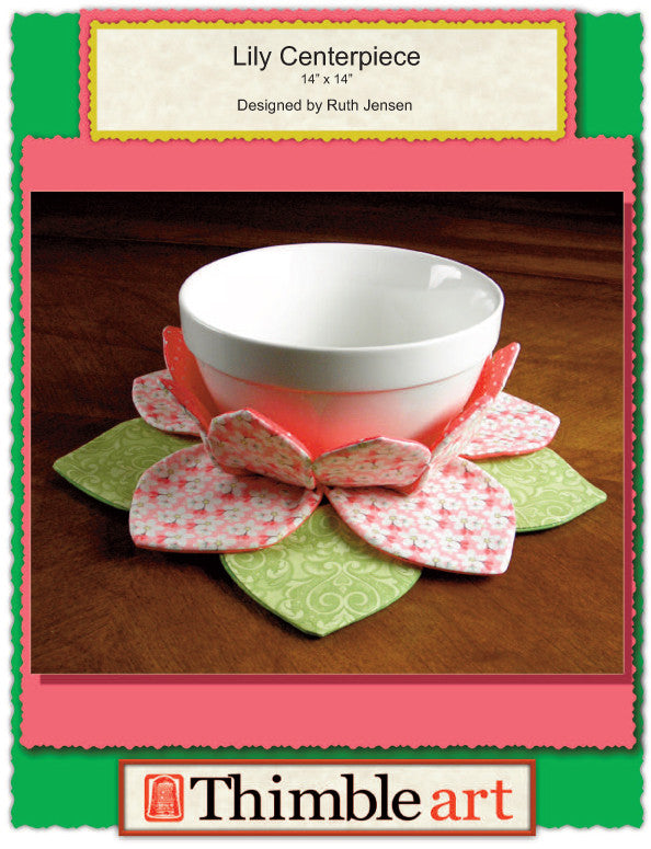 This beautiful Lily Centerpiece was inspired by Claude Monet's impressionistic "WaterLilies." The Lily can be made using a variety of colors--from vibrant to pastel. The pattern uses the same Fold-and-Sew technique as our other centerpiece patterns and is available as a $3.00 download.